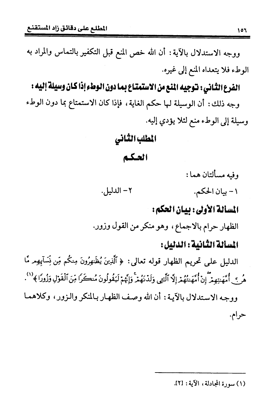 ووجه الاستدلال بالآية: أن الله وصف الظهار بالمنكر والزور، وكلاهما حرام.