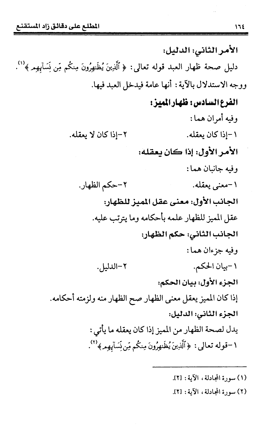 عقل الميز للظهار علمه بأحكامه وما يترتب عليه.