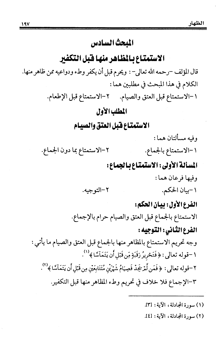 المبحث السادس الاستمتاع بالمظاهر منها قبل التكفير