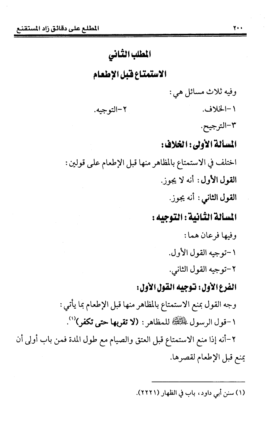 المطلب الثاني الاستمتاع قبل الإطعام