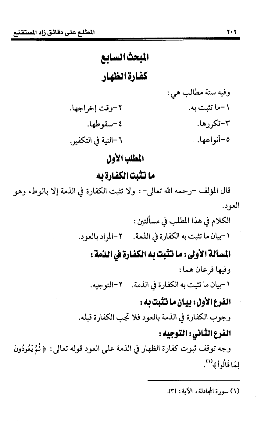 المبحث السابع كفارة الظهار