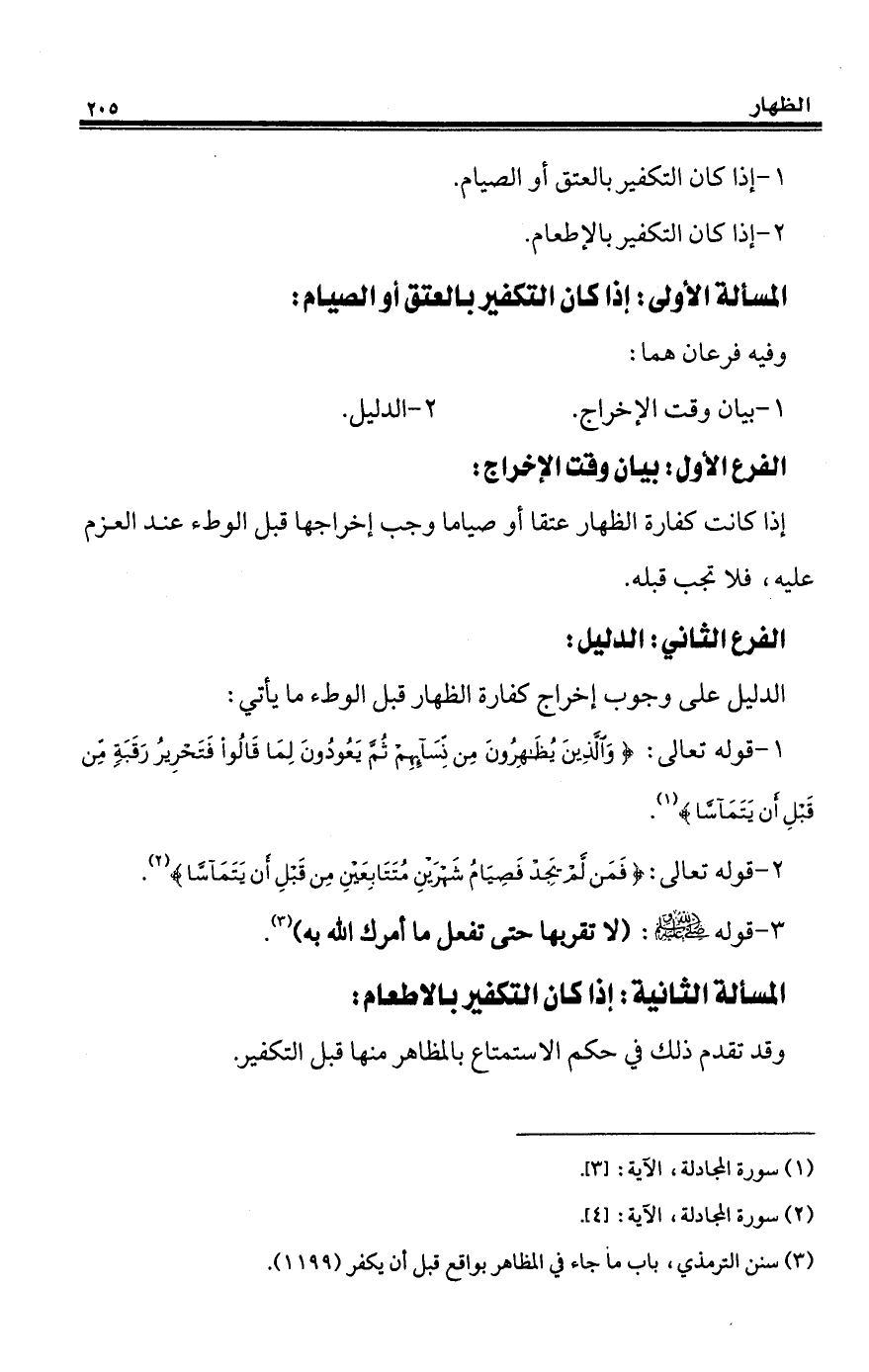 (¬3) سنن الترمذي، باب ما جاء في المظاهر بواقع قبل أن يكفر (1199).