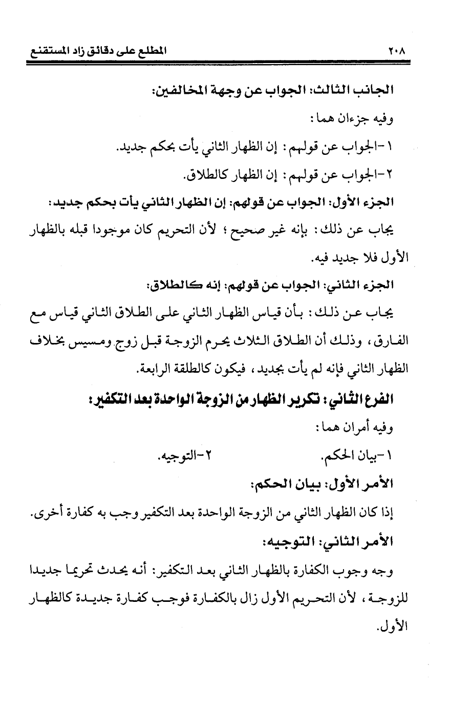 الجزء الأوّل: الجواب عن قولهم: إن الظهار الثاني يأت بحكم جديد: