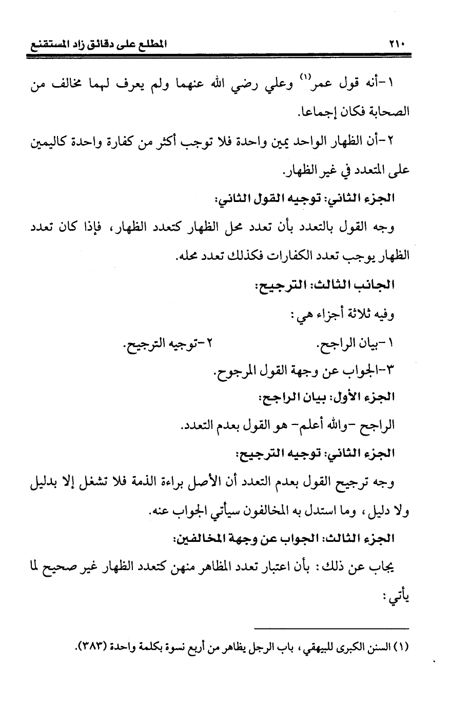 (¬1) السنن الكبرى للبيهقي، باب الرجل يظاهر من أربع نسوة بكلمة واحدة (383).