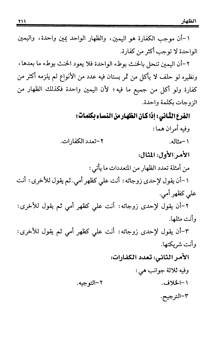 الفرع الثاني: إذا كان الظهار من النساء بكلمات: