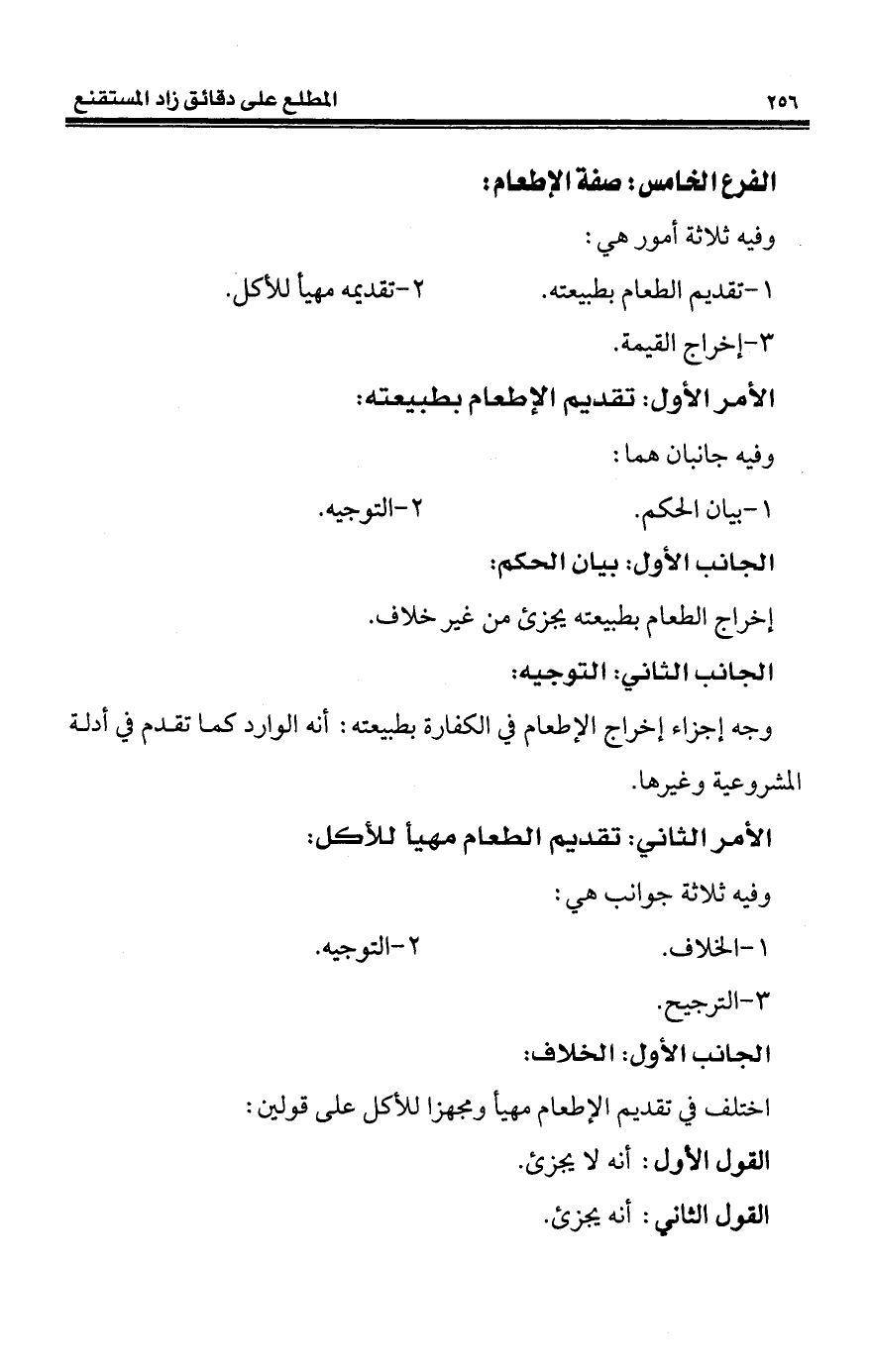 اختلف في تقديم الإطعام مهيأ ومجهزا للأكل على قولين: