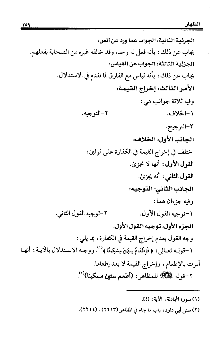 1 - قوله تعالى: {فَإِطْعَامُ سِتِّينَ مِسْكِينًا} (¬1). ووجه الاستدلال بالآية: أنها أمرت بالإطعام، وإخراج القيمة لا يعد إطعاما.