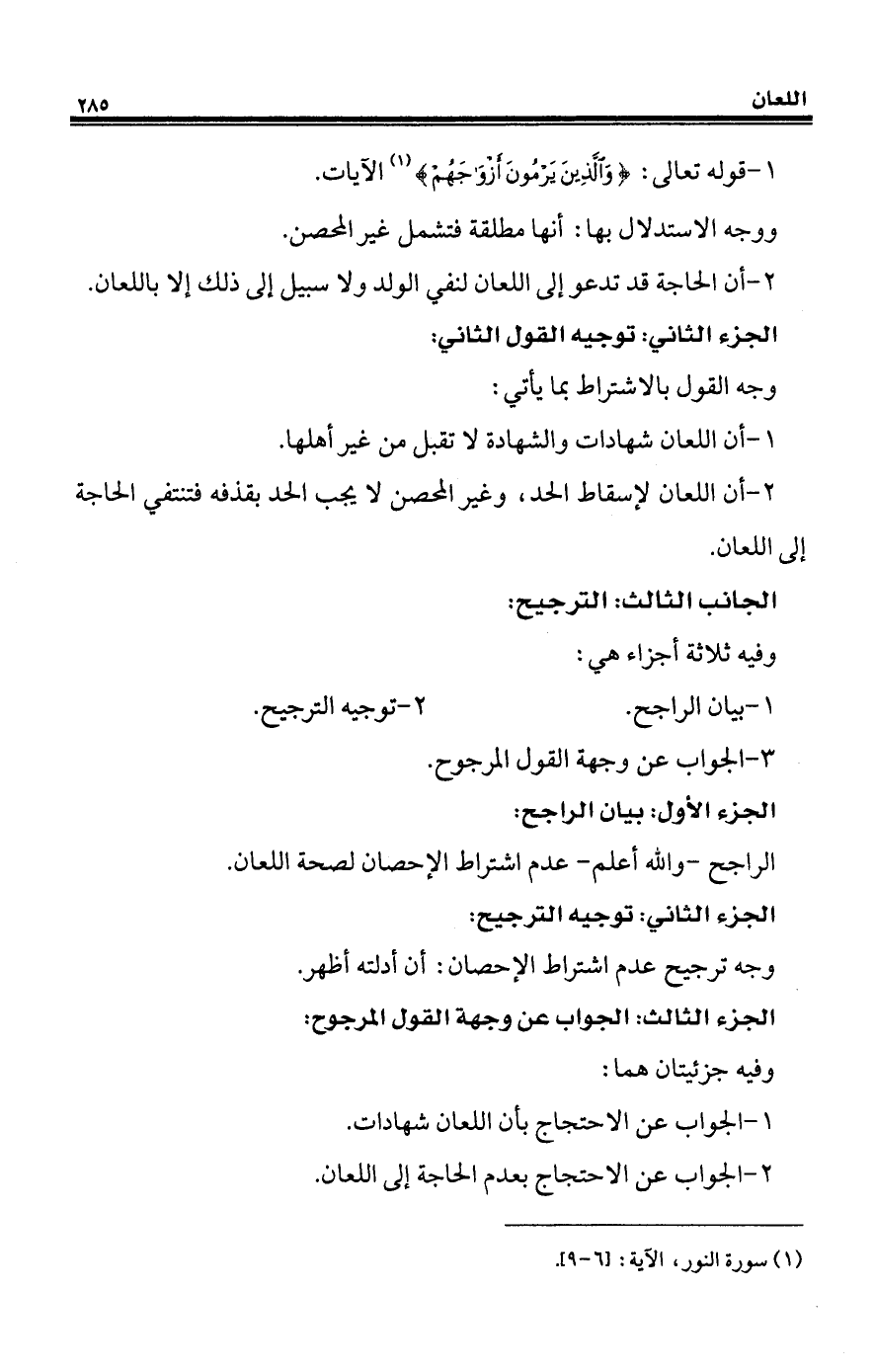 الراجح - والله أعلم - عدم اشتراط الإحصان لصحة اللعان.