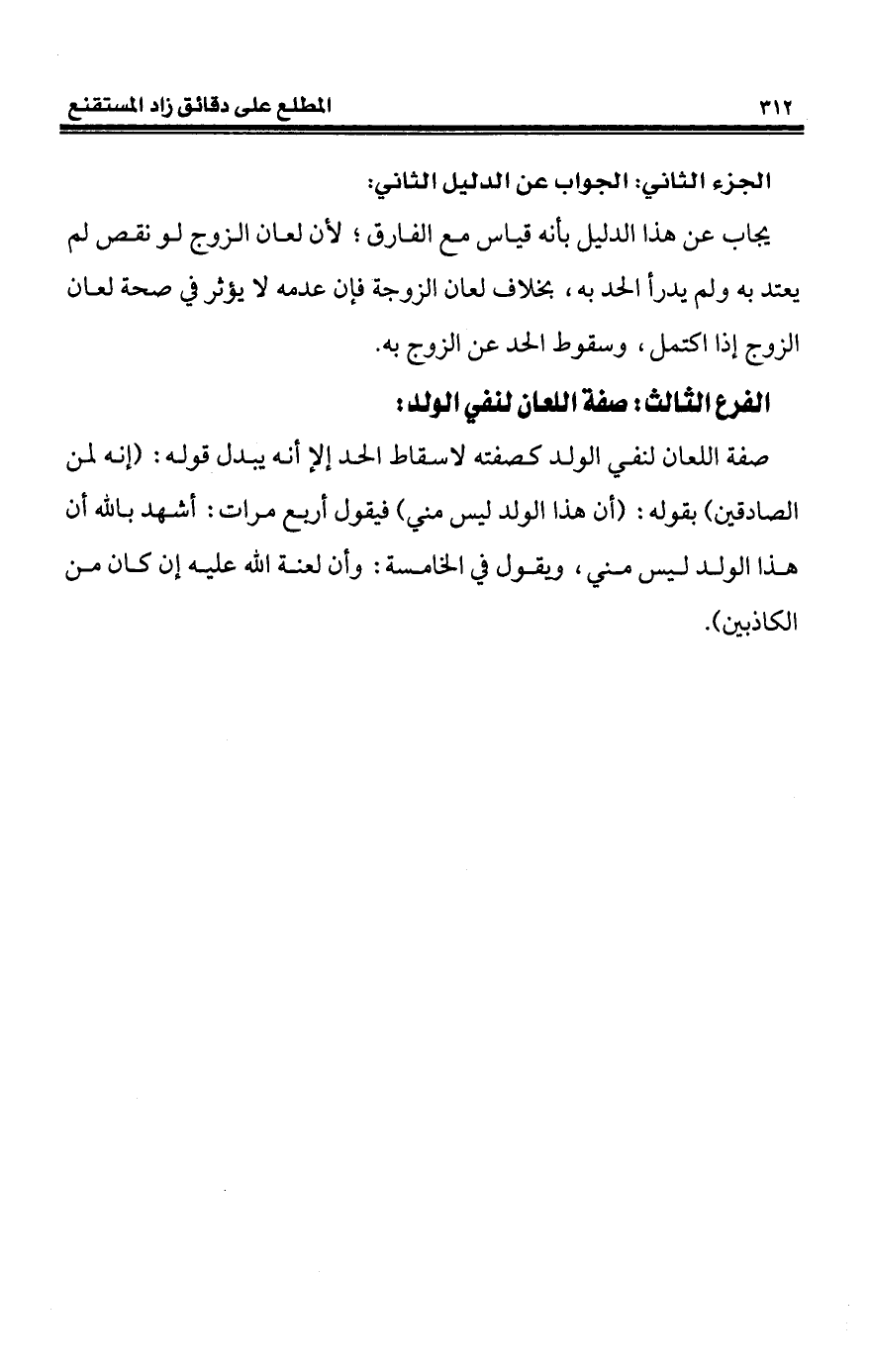 يجاب عن هذا الدليل بأنه قياس مع الفارق؛ لأن لعان الزوج لو نقص لم يعتد به ولم يدرأ الحد به، بخلاف لعان الزوجة فإن عدمه لا يؤثر في صحة لعان الزوج إذا اكتمل، وسقوط الحد عن الزوج به.