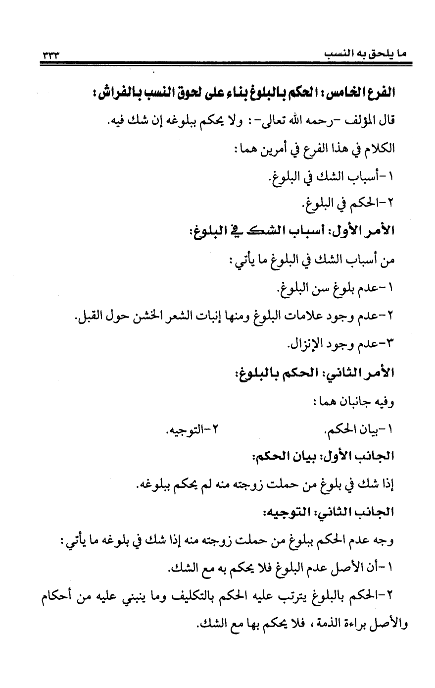 وجه عدم الحكم ببلوغ من حملت زوجته منه إذا شك في بلوغه ما يأتي: