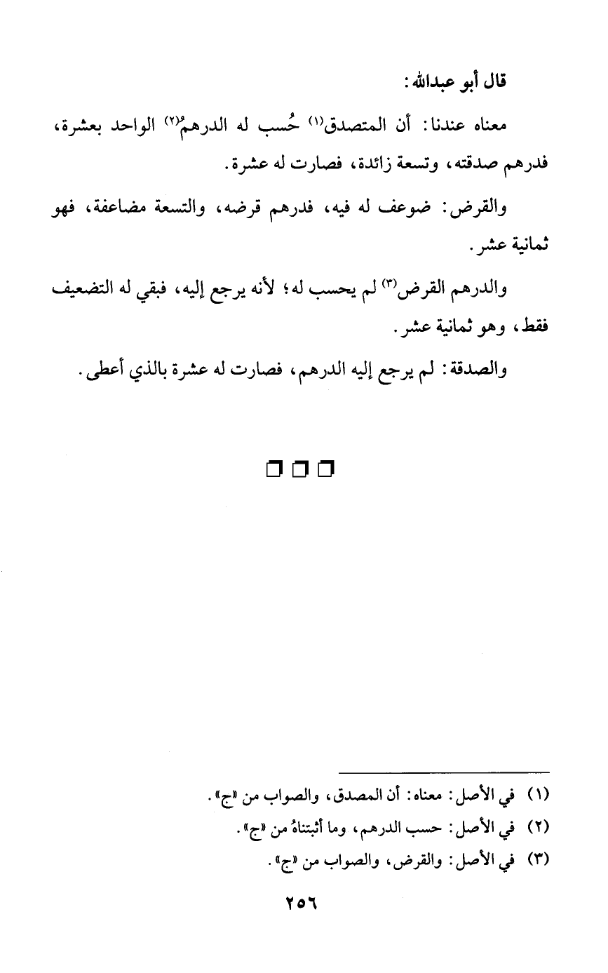 والصدقة: لم يرجع إليه الدرهم، فصارت له عشرة بالذي أعطى.