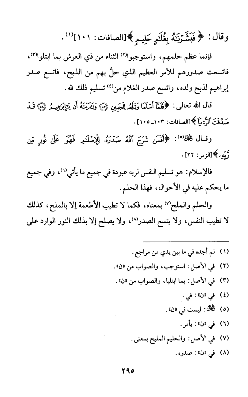 فالإسلام: هو تسليم النفس لربه عبودة في جميع ما يأتي، وفي جميع ما يحكم عليه في الأحوال، فهذا الحلم.
