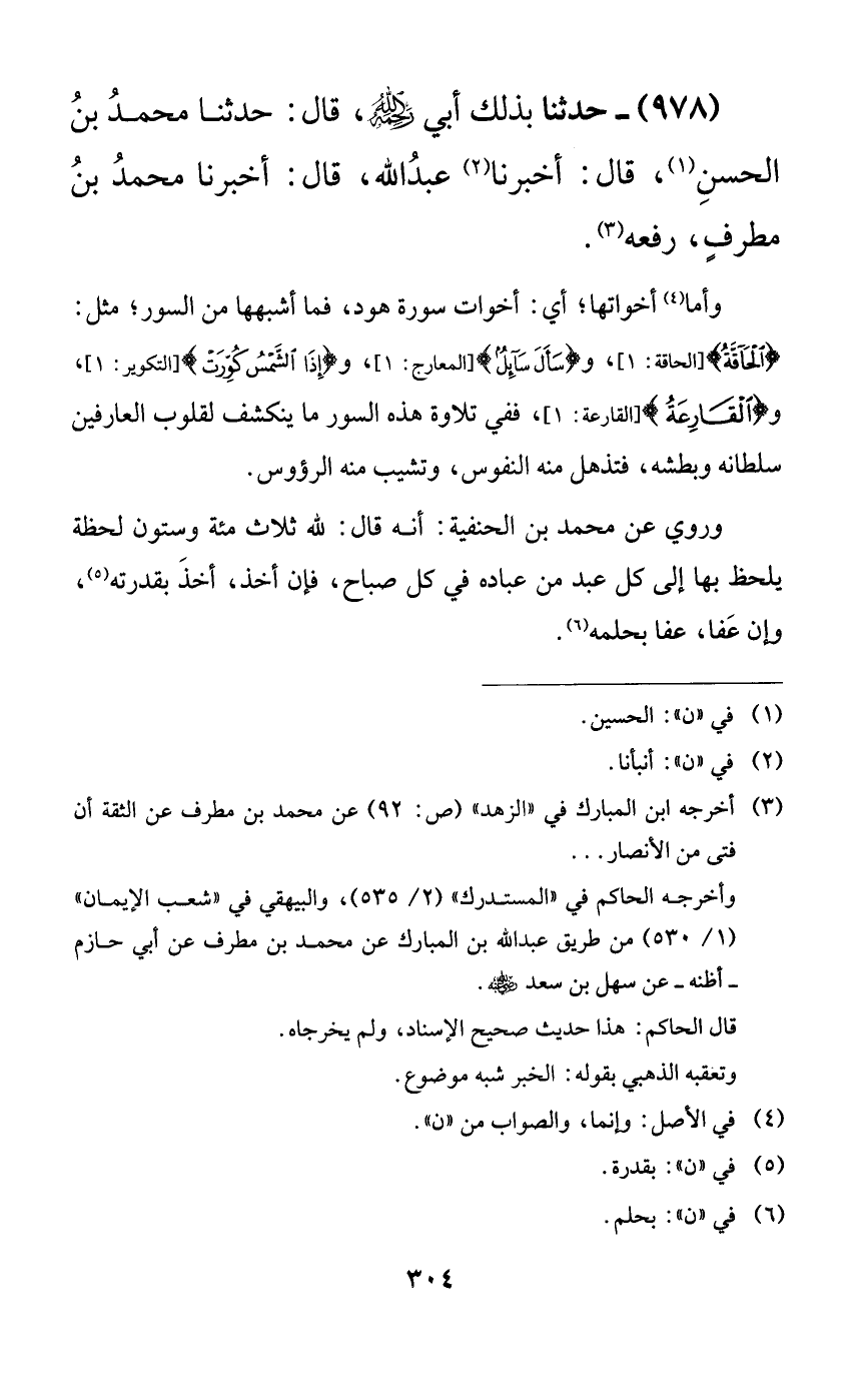 978 - حدثنا بذلك أبي رحمه الله، قال: حدثنا محمد بن الحسن، قال: أخبرنا عبد الله، قال: أخبرنا محمد بن مطرفٍ، رفعه.