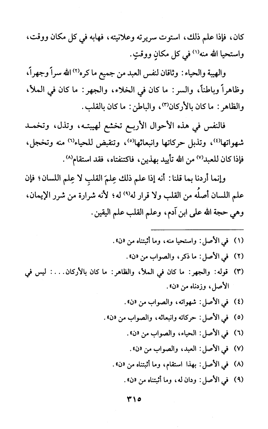 كان، فإذا علم ذلك، استوت سريرته وعلانيته، فهابه في كل مكان ووقت، واستحيا الله منه في كل مكانٍ ووقتٍ.