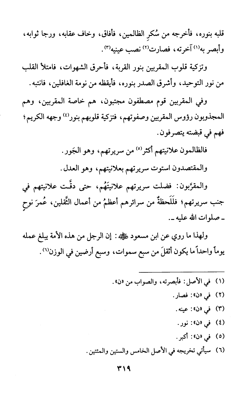 ولهذا ما روي عن ابن مسعود رضي الله عنه: إن الرجل من هذه الأمة يبلغ عمله يوماً واحداً ما يكون أثقل من سبع سماوات، وسبع أرضين في الوزن.