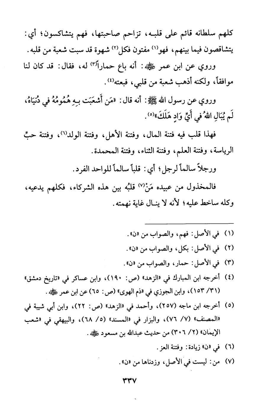 فهذا قلب فيه فتنة المال، وفتنة الأهل، وفتنة الولد، وفتنة حب الرياسة، وفتنة العلم، وفتنة الثناء، وفتنة المحمدة.