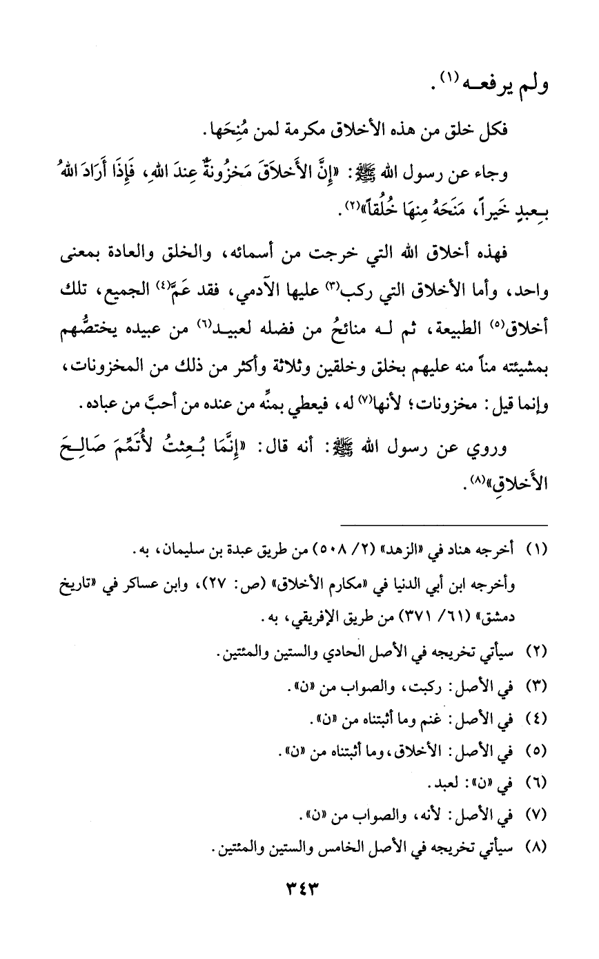 وروي عن رسول الله صلى الله عليه وسلم: أنه قال: ((إنما بعثت لأتمم صالح الأخلاق)).