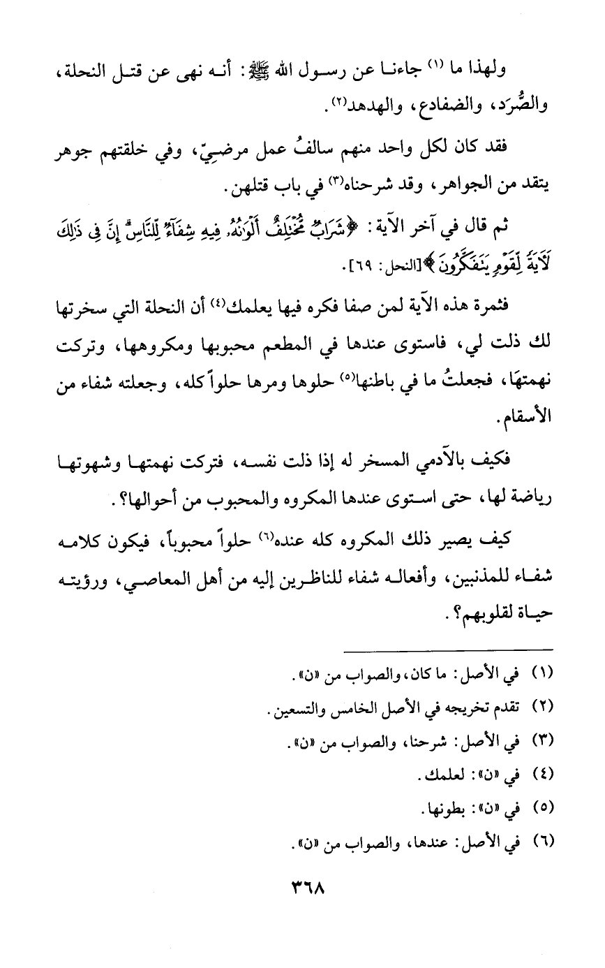 ولهذا ما جاءنا عن رسول الله صلى الله عليه وسلم: أنه نهى عن قتل النحلة، والصرد، والضفادع، والهدهد.