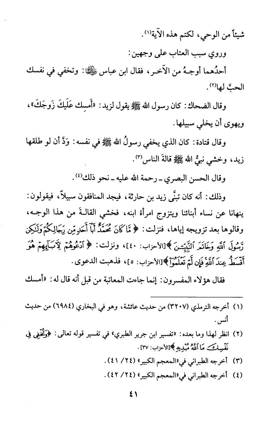 وذلك: أنه كان تبنى زيد بن حارثة، فيجد المنافقون سبيلاً، فيقولون: ينهانا عن نساء أبنائنا ويتزوج امرأة ابنه، فخشي القالة من هذا الوجه، وقالوها بعد تزويجه إياها، فنزلت: {ما كان محمدٌ أبا أحدٍ من رجالكم ولكن رسول الله وخاتم النبيين}، ونزلت: {ادعوهم لأبائهم هو أقسط عند الله فإن لم تعلموا}، فذهبت الدعوى.