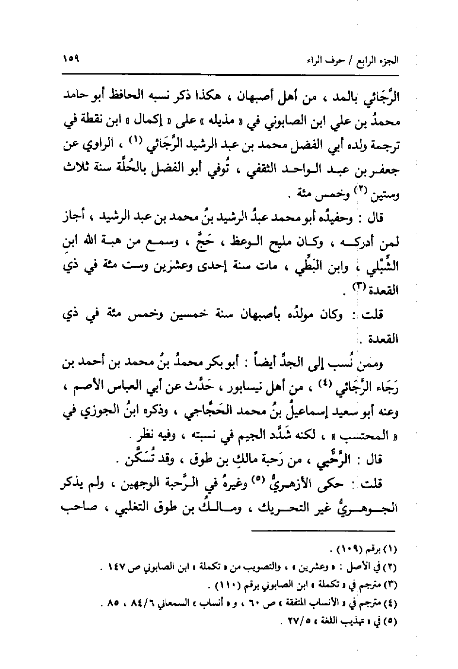 الرجائي بِالْمدِّ، من أهل أَصْبَهَان، هَكَذَا ذكره نسبه الْحَافِظ أَبُو حَامِد مُحَمَّد بن عَليّ ابْن الصَّابُونِي فِي " مذيله " على " إِكْمَال " ابْن نقطة فِي تَرْجَمَة وَلَده أبي الْفضل مُحَمَّد بن عبد الرشيد الرجائي، الرَّاوِي عَن جَعْفَر بن عبد الْوَاحِد الثَّقَفِيّ، توفّي أَبُو الْفضل بالحلة سنة ثَلَاث وَسِتِّينَ وَخمْس مئة.