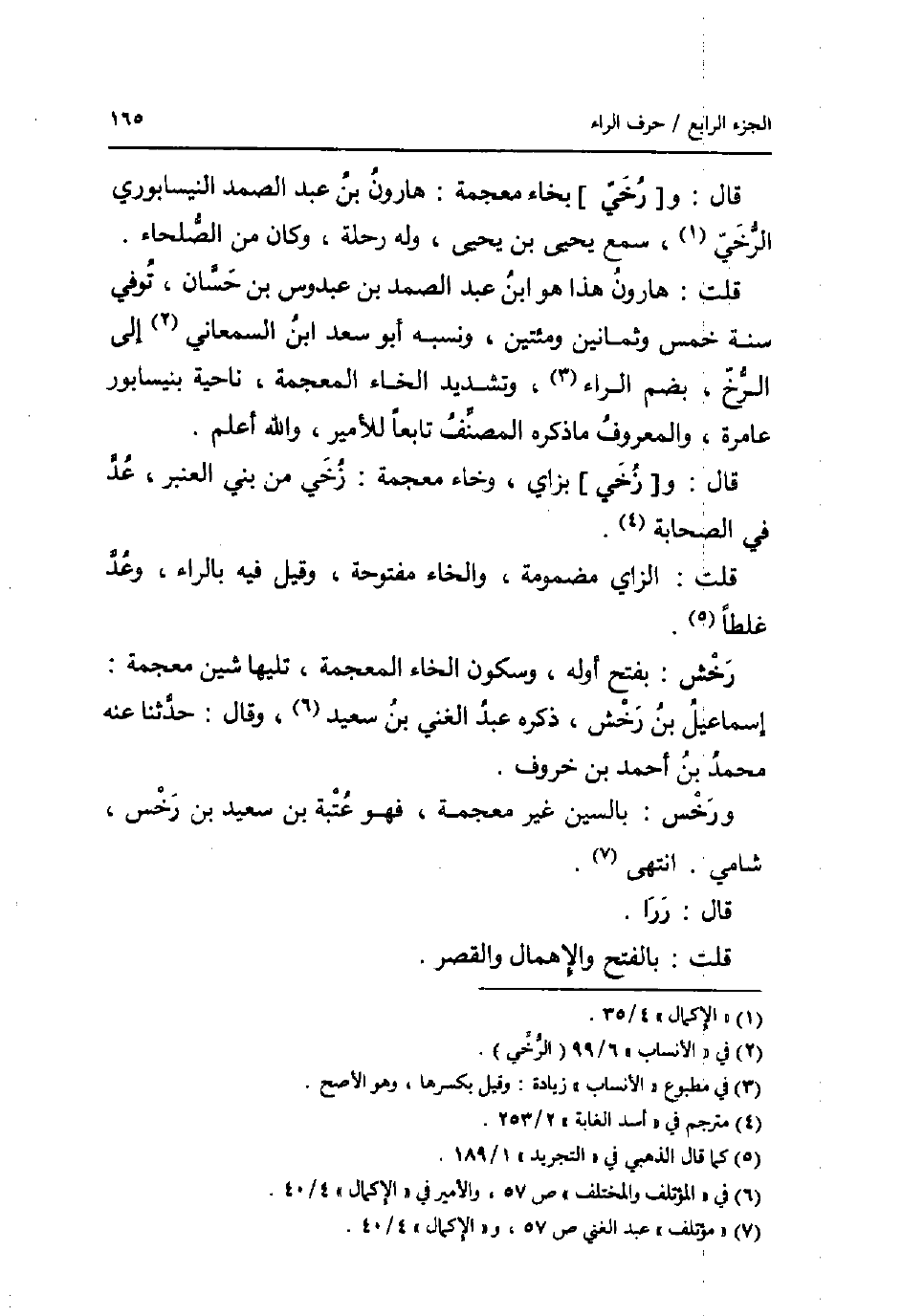 قلت: هَارُون هَذَا هُوَ ابْن عبد الصَّمد بن عَبدُوس بن حسان، توفّي سنة خمس وَثَمَانِينَ ومئتين، وَنسبه أَبُو سعد ابْن السَّمْعَانِيّ إِلَى الرخ، بِضَم الرَّاء، وَتَشْديد الْخَاء الْمُعْجَمَة، نَاحيَة بنيسابور عامرة، وَالْمَعْرُوف مَا ذكره المُصَنّف تَابعا للأمير، وَالله أعلم.