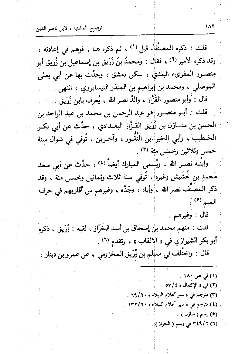 قلت: أَبُو مَنْصُور هُوَ عبد الرَّحْمَن بن مُحَمَّد بن عبد الْوَاحِد بن الْحسن بن منَازِل بن زُرَيْق الْقَزاز الْبَغْدَادِيّ، حدث عَن أبي بكر الْخَطِيب، وَأبي الْخَيْر ابْن النقور، وَآخَرين، توفّي فِي شَوَّال سنة خمس وَثَلَاثِينَ وَخمْس مئة.