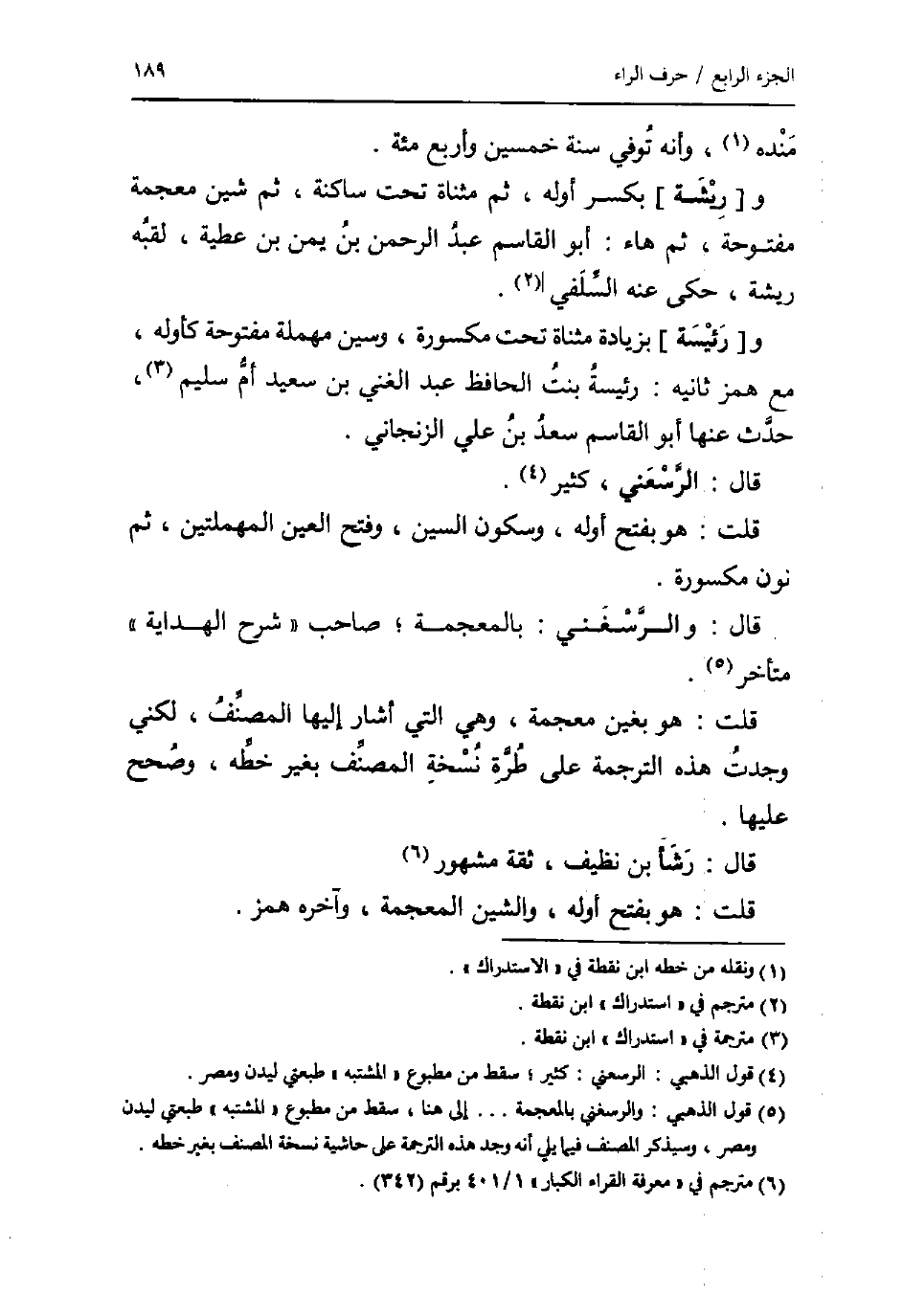 و [رَئيْسَة] بِزِيَادَة مثناة تَحت مَكْسُورَة، وسين مُهْملَة مَفْتُوحَة كأوله، مَعَ همز ثَانِيه: رئيسة بنت الْحَافِظ عبد الْغَنِيّ بن سعيد أم سليم، حدث عَنْهَا أَبُو الْقَاسِم سعد بن عَليّ الزنجاني.