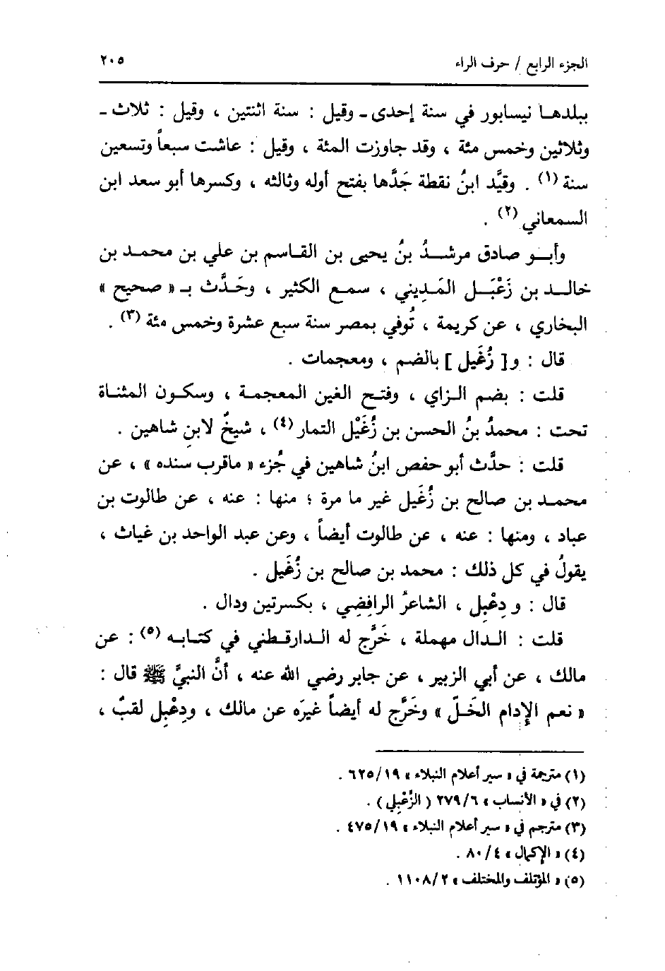 قلت: بِضَم الزَّاي، وَفتح الْغَيْن الْمُعْجَمَة، وَسُكُون الْمُثَنَّاة تَحت: مُحَمَّد بن الْحسن بن زغيل التمار، شيخ لِابْنِ شاهين.