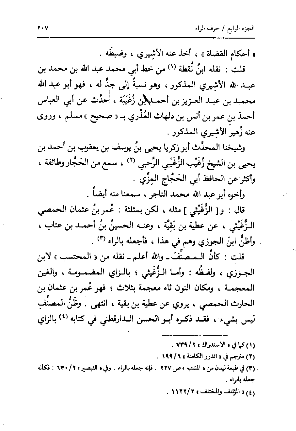 قلت: كَأَن المُصَنّف - وَالله أعلم - نَقله من " الْمُحْتَسب " لِابْنِ الْجَوْزِيّ، وَلَفظه: وَأما الزغيثي؛ بالزاي المضمومة، والغين الْمُعْجَمَة، وَمَكَان النُّون ثاء مُعْجمَة بِثَلَاث؛ فَهُوَ عمر بن عُثْمَان بن الْحَارِث الْحِمصِي، يروي عَن عَطِيَّة بن بَقِيَّة، انْتهى. وَظن المُصَنّف لَيْسَ بِشَيْء، فقد ذكره أَبُو الْحسن الدَّارَقُطْنِيّ فِي كِتَابه بالزاي