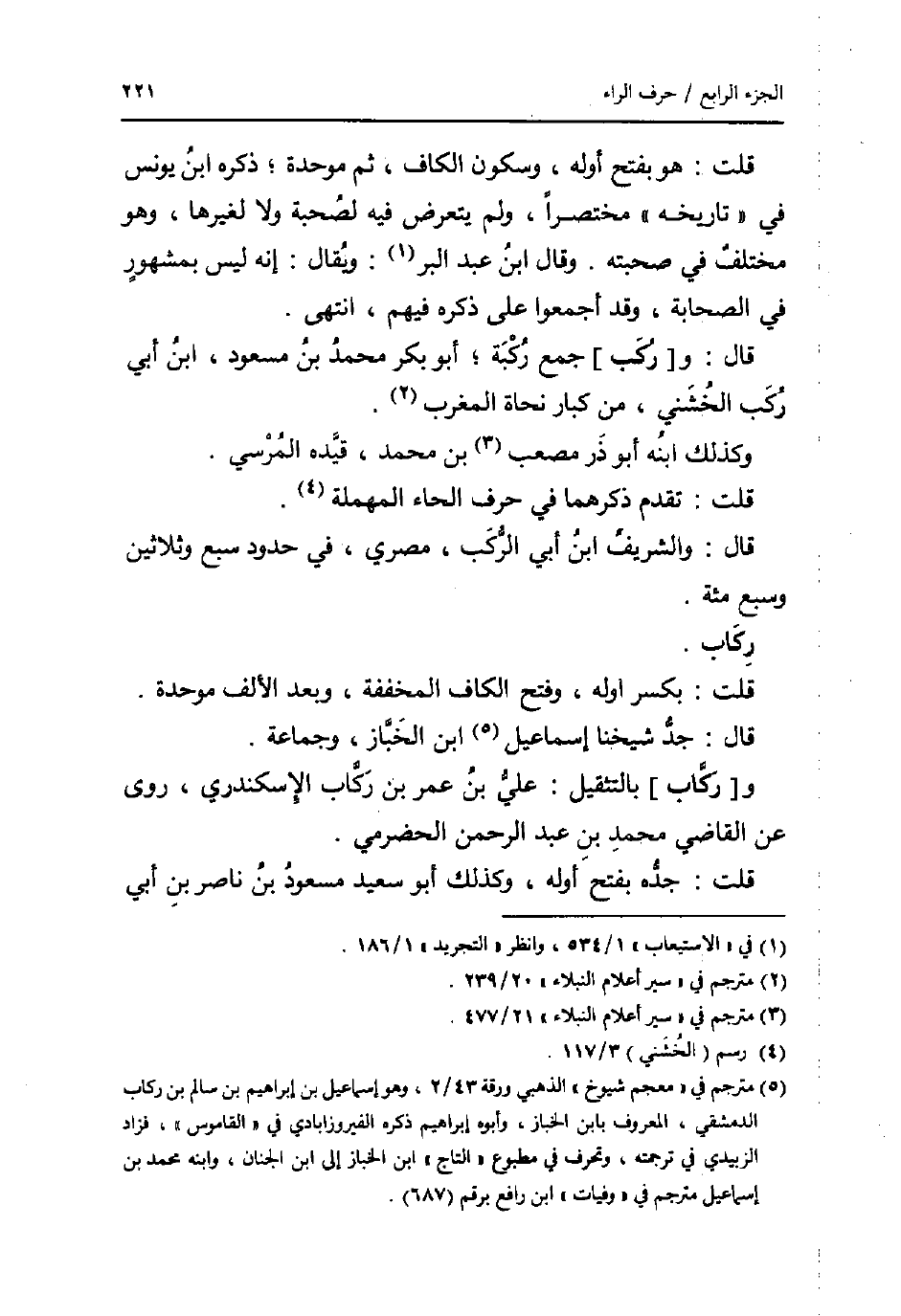 قَالَ: و [رُكَب] جمع ركبة؛ أَبُو بكر مُحَمَّد بن مَسْعُود، ابْن أبي ركب الْخُشَنِي، من كبار نحاة الْمغرب.