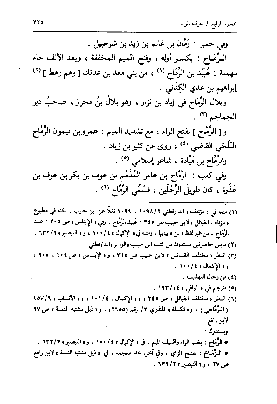 الرِّمَاح: بِكَسْر أَوله، وَفتح الْمِيم المخففة، وَبعد الْألف حاء مُهْملَة: عبيد بن الرماح، من بني معد بن عدنان [وهم رَهْط] إِبْرَاهِيم بن عدي الْكِنَانِي.