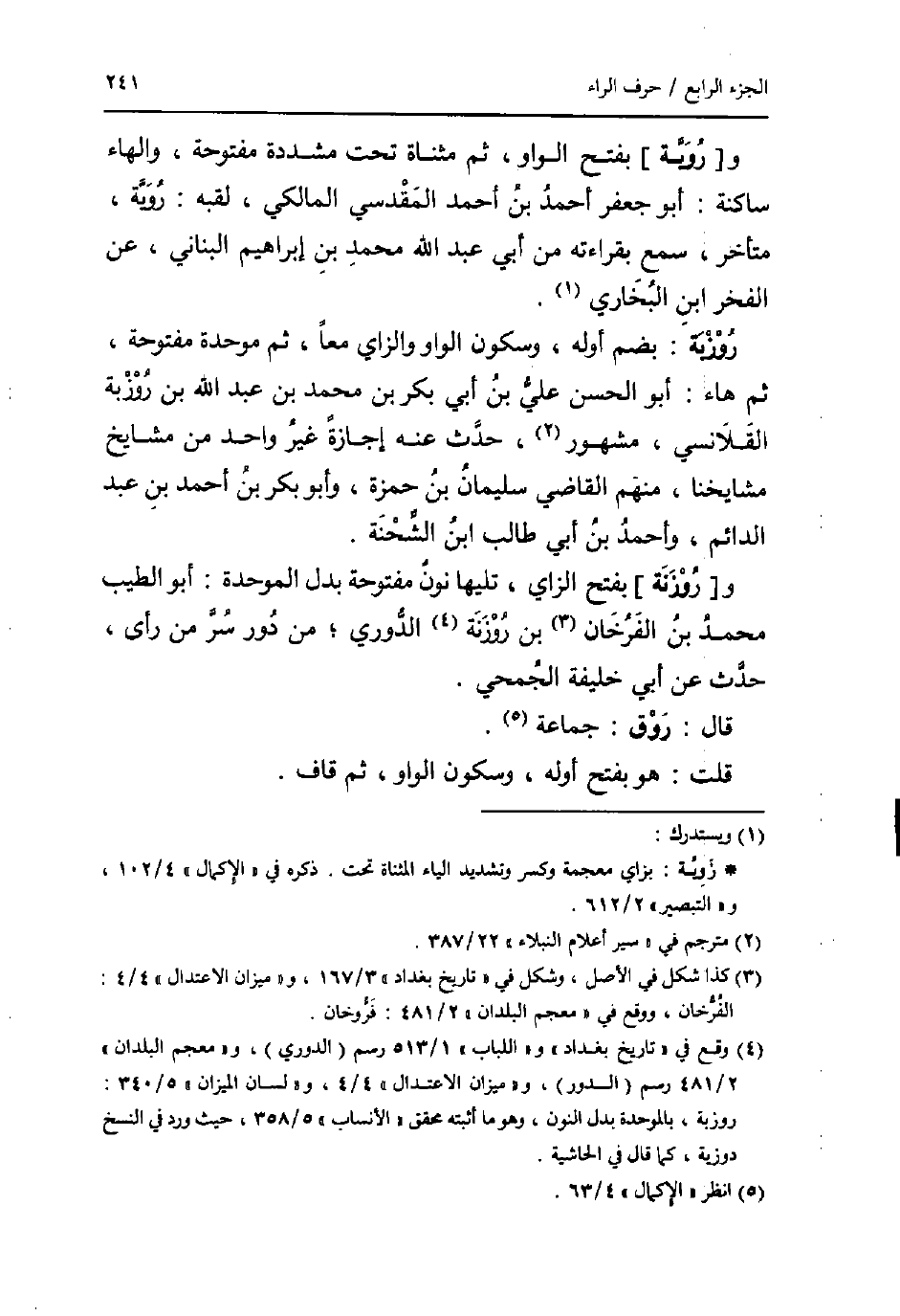 و [رُوَيَّة] بِفَتْح الْوَاو، ثمَّ مثناة تَحت مُشَدّدَة مَفْتُوحَة، وَالْهَاء سَاكِنة: أَبُو جَعْفَر أَحْمد بن أَحْمد الْمَقْدِسِي الْمَالِكِي، لقبه: روية، مُتَأَخّر، سمع بقرَاءَته من أبي عبد الله مُحَمَّد بن إِبْرَاهِيم الْبنانِيّ، عَن الْفَخر ابْن البُخَارِيّ.