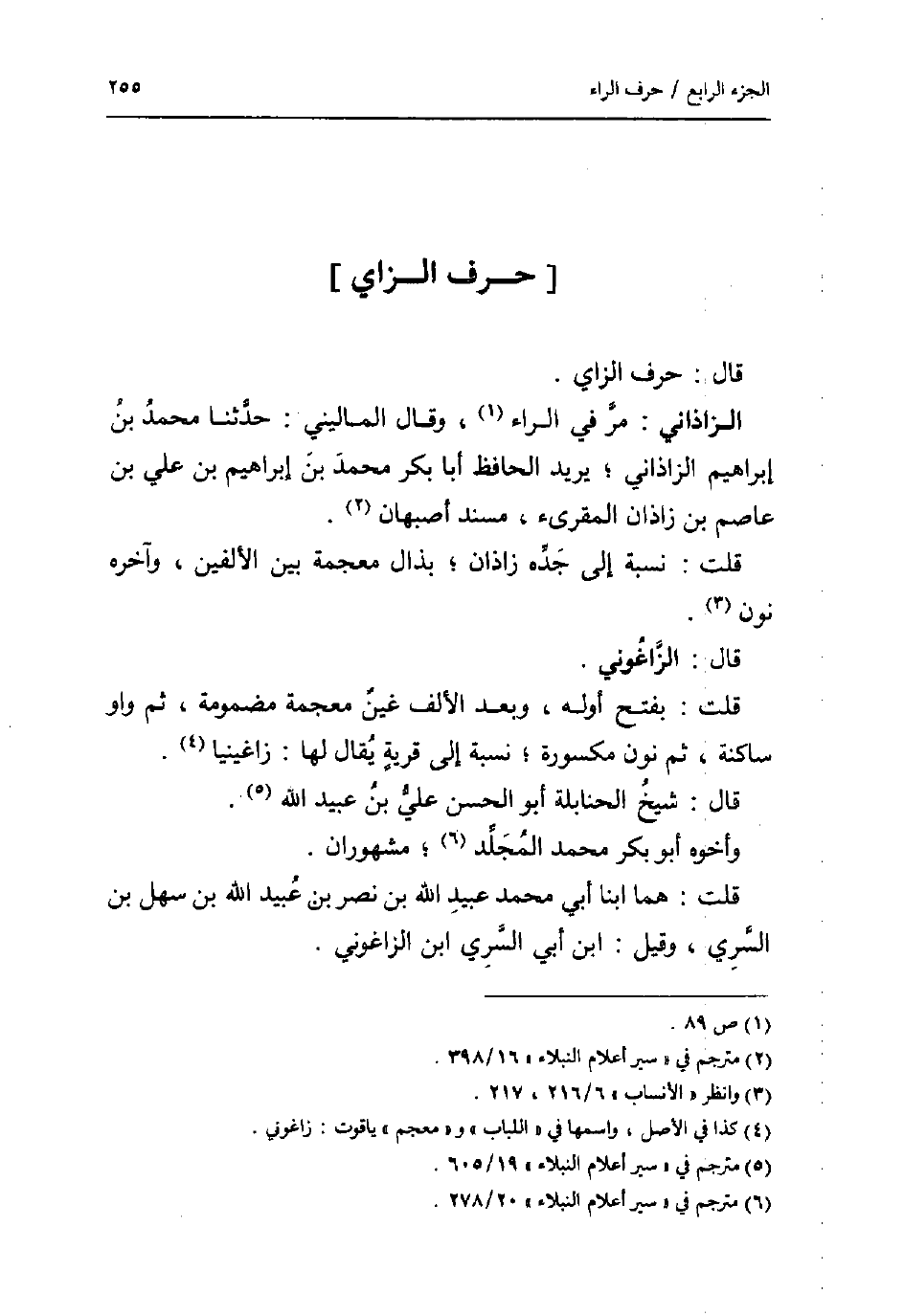 قلت: نسية إِلَى جده زَاذَان؛ بذال مُعْجمَة بَين الْأَلفَيْنِ، وَآخره نون.