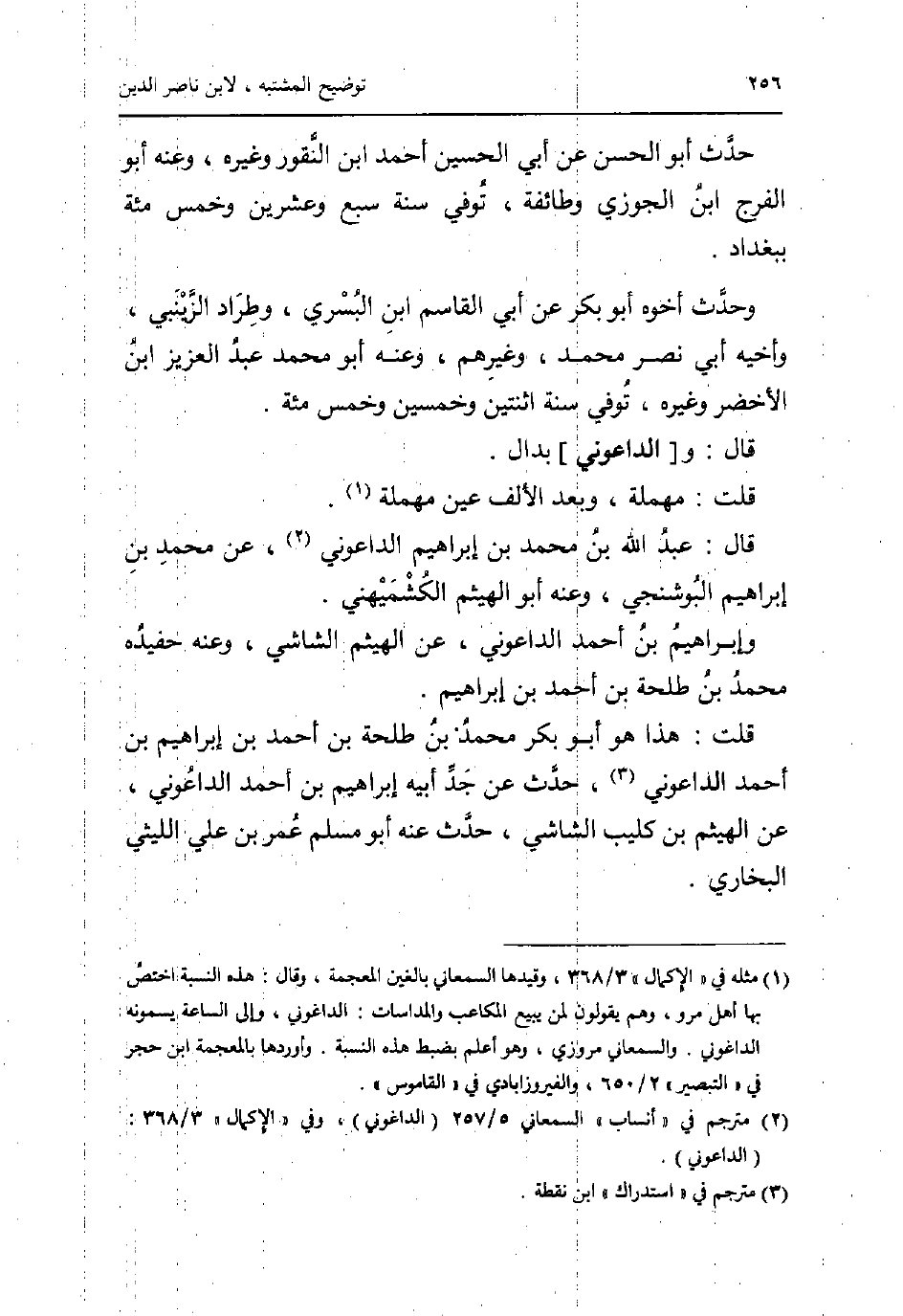 قلت: هَذَا هُوَ أَبُو بكر مُحَمَّد بن طَلْحَة بن أَحْمد بن إِبْرَاهِيم بن أَحْمد الداعوني، حدث عَن جد أَبِيه إِبْرَاهِيم بن أَحْمد الداعوني، عَن الْهَيْثَم بن كُلَيْب الشَّاشِي، حدث عَنهُ أَبُو مُسلم عمر بن عَليّ اللَّيْثِيّ البُخَارِيّ.