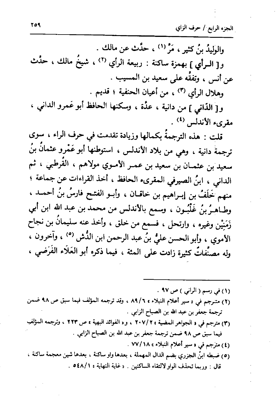 قلت: هَذِه التَّرْجَمَة بكمالها وَزِيَادَة تقدّمت فِي حرف الرَّاء، سوى تَرْجَمَة دانية، وَهِي من بِلَاد الأندلس، استوطنها أَبُو عَمْرو وَعُثْمَان بن سعيد بن عُثْمَان بن سعيد بن عمر الْأمَوِي مَوْلَاهُم، الْقُرْطُبِيّ، ثمَّ الداني، ابْن الصَّيْرَفِي الْمُقْرِئ الْحَافِظ، أَخذ الْقرَاءَات عَن جمَاعَة؛ مِنْهُم خلف بن إِبْرَاهِيم بن خاقَان، وَأَبُو الْفَتْح فَارس بن أَحْمد، وطاهر بن غلبون، وَسمع بالأندلس من مُحَمَّد بن عبد الله ابْن أبي زمنين وَغَيره، وارتحل، فَسمع من خلق، وَأخذ عَنهُ سُلَيْمَان بن نجاح الْأمَوِي، وَأَبُو الْحسن عَليّ بن عبد الرَّحْمَن ابْن الدش، وَآخَرُونَ، وَله مصنفات كَثِيرَة زَادَت على المئة، فِيمَا ذكره أَبُو الْعَلَاء الفرضي،