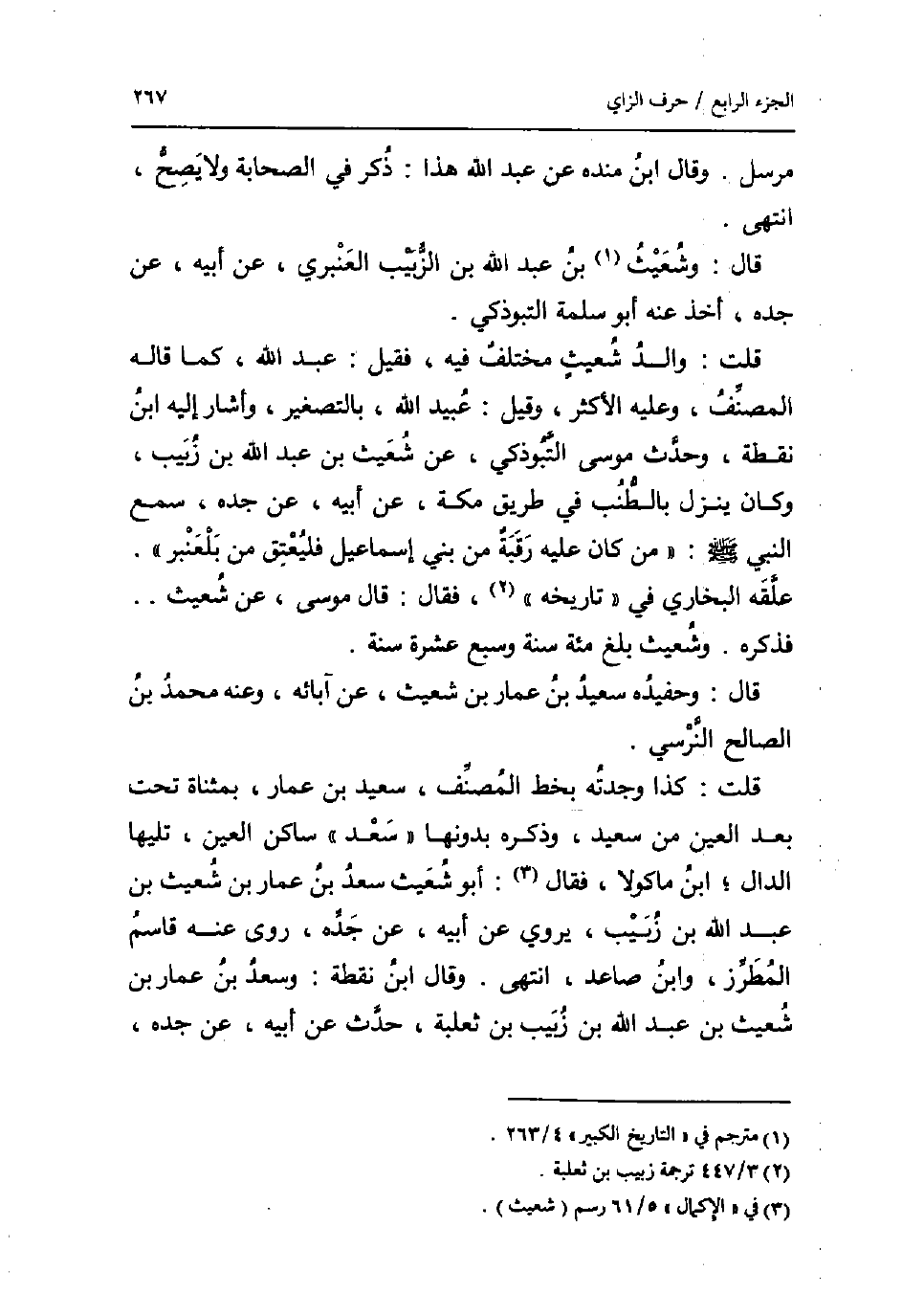 قلت: كَذَا وجدته بِخَط المُصَنّف، سعيد بن عمار، بمثناة تَحت بعد الْعين من سعيد، وَذكره بِدُونِهَا " سعد " سَاكن الْعين، تَلِيهَا الدَّال؛ ابْن مَاكُولَا، فَقَالَ: أَبُو شعيث سعد بن عمار بن شعيث بن عبد الله بن زبيب، يروي عَن أَبِيه، عَن جده، روى عَنهُ قَاسم الْمُطَرز، وَابْن صاعد، انْتهى. وَقَالَ ابْن نقطة: وَسعد بن عمار بن شعيث بن عبد الله بن زبيب بن ثَعْلَبَة، حدث عَن أَبِيه، عَن جده،