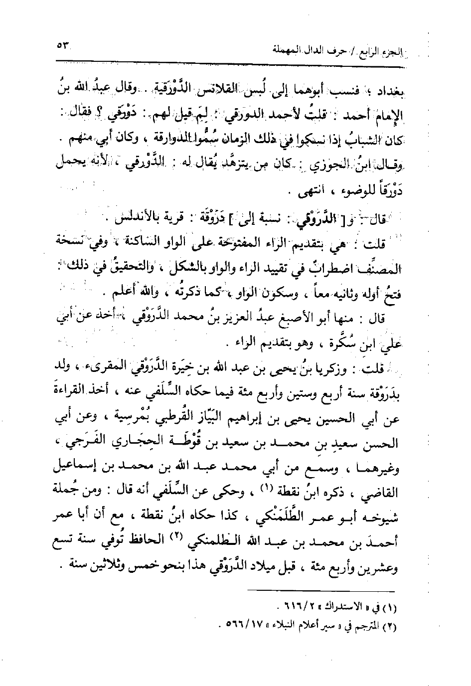 قَالَ: مِنْهَا أَبُو الْأَصْبَغ عبد الْعَزِيز بن مُحَمَّد الدروقي، أَخذ عَن أبي عَليّ ابْن سكرة، وَهُوَ بِتَقْدِيم الرَّاء.