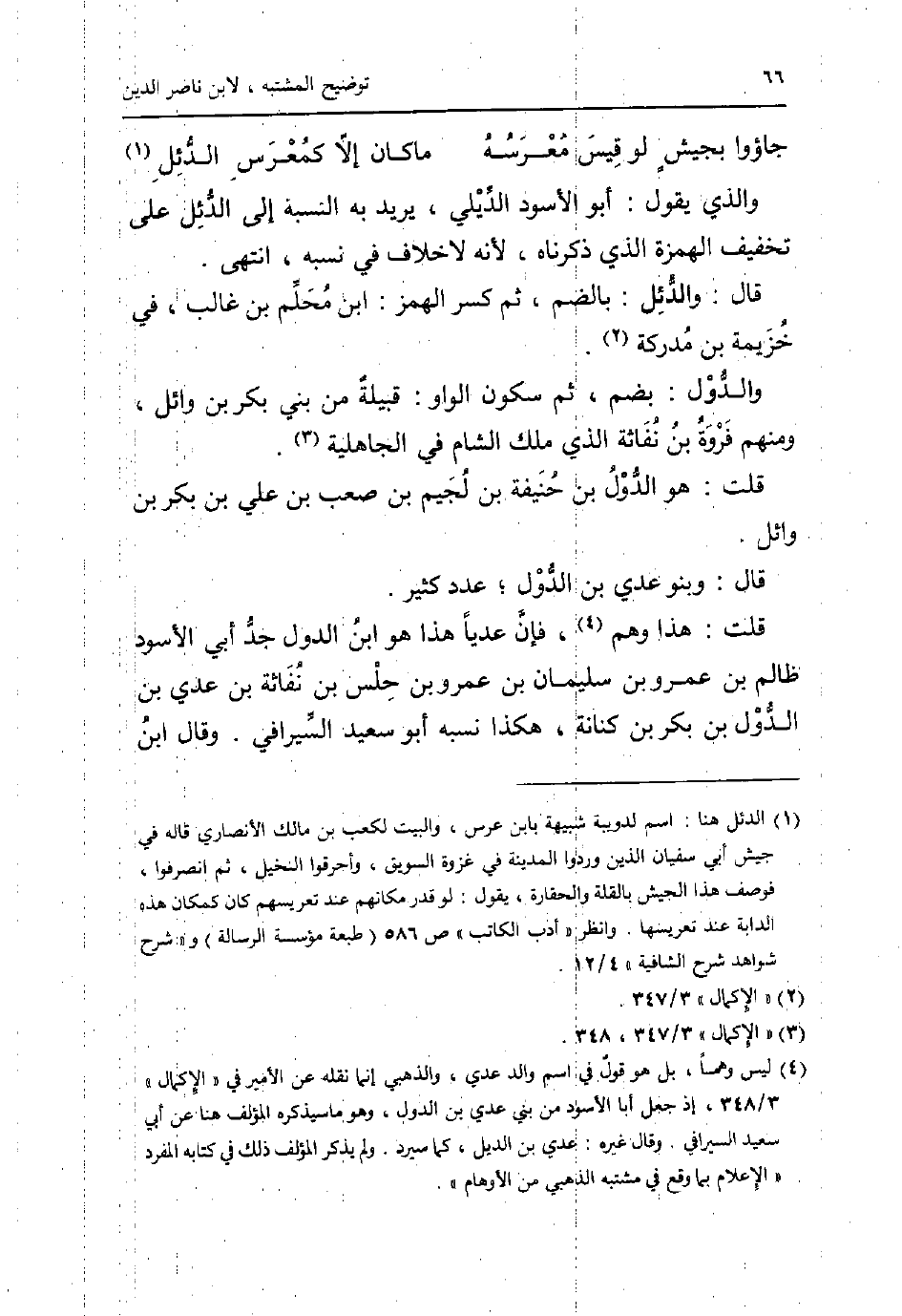قلت: هَذَا وهم، فَإِن عديا هَذَا هُوَ ابْن الدول جد أبي الْأسود ظَالِم بن عَمْرو بن سُلَيْمَان بن عَمْرو بن حلْس بن نفاثة بن عدي بن الدول بن بكر بن كنَانَة، هَكَذَا نسبه أَبُو سعيد السيرافي. وَقَالَ ابْن