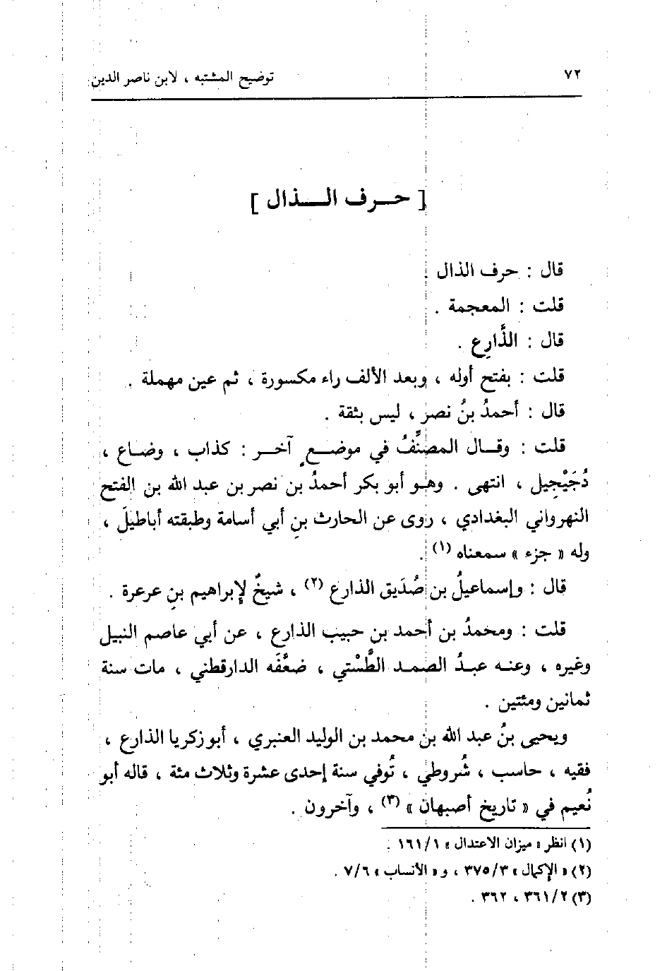 قلت: وَمُحَمّد بن أَحْمد بن حبيب الذارع، عَن أبي عَاصِم النَّبِيل وَغَيره، وَعنهُ عبد الصَّمد الطستي، ضعفه الدَّارَقُطْنِيّ، مَاتَ سنة ثَمَانِينَ ومئتين.
