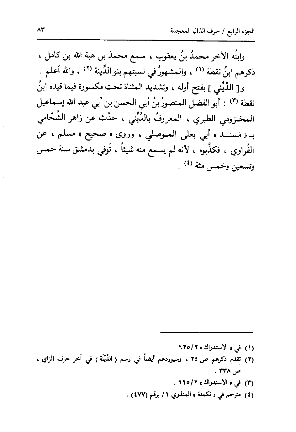 و [الدَّيِّني] بِفَتْح أَوله، وَتَشْديد الْمُثَنَّاة تَحت مَكْسُورَة فِيمَا قَيده ابْن نقطة: أَبُو الْفضل الْمَنْصُور بن أبي الْحسن بن أبي عبد الله إِسْمَاعِيل المَخْزُومِي الطَّبَرِيّ، الْمَعْرُوف بالديني، حدث عَن زَاهِر الشحامي ب " مُسْند " أبي يعلى الْموصِلِي، وروى " صَحِيح " مُسلم، عَن الفراوي، فَكَذبُوهُ، لِأَنَّهُ لم يسمع مِنْهُ شَيْئا، توفّي بِدِمَشْق سنة خمس وَتِسْعين وَخمْس مئة.