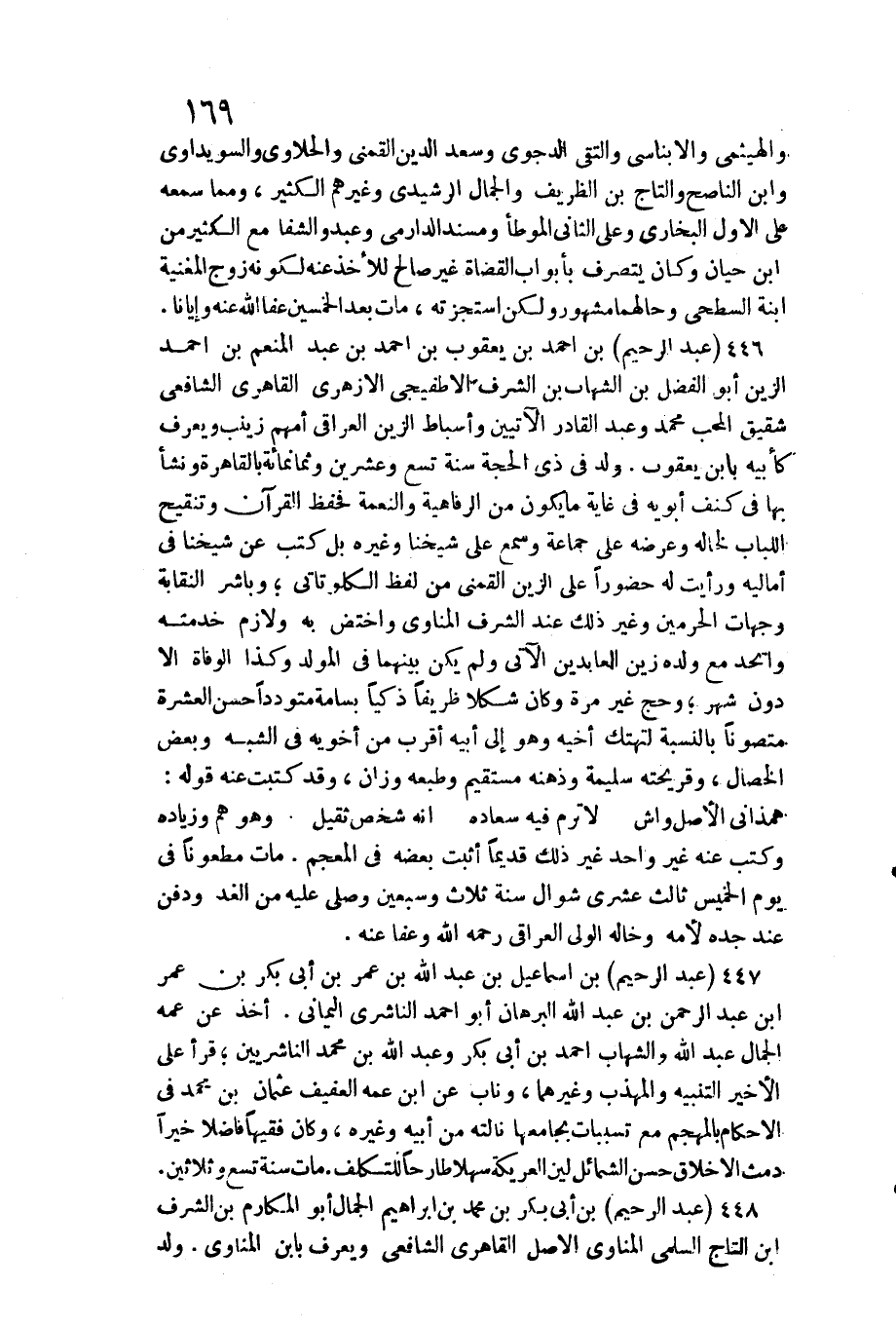 448 - عبد الرَّحِيم بن أبي بكر بن مُحَمَّد بن إِبْرَاهِيم الْجمال أَبُو المكارم بن الشّرف ابْن التَّاج السّلمِيّ الْمَنَاوِيّ الأَصْل القاهري الشَّافِعِي وَيعرف بِابْن الْمَنَاوِيّ. / ولد