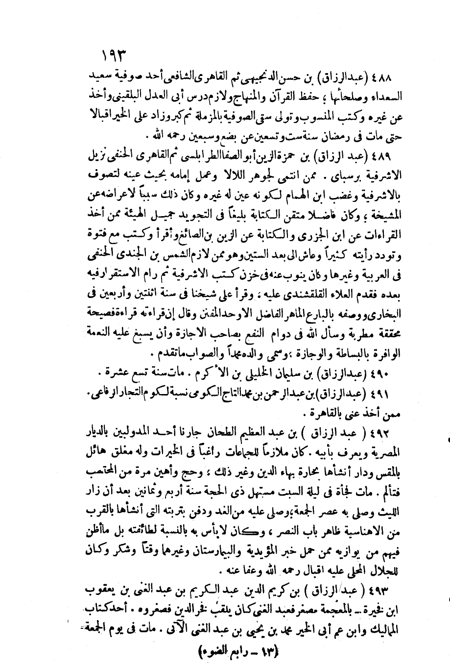 491 - عبد الرَّزَّاق بن عبد الرَّحْمَن بن مُحَمَّد التَّاج الكومي / نِسْبَة لكوم التُّجَّار الرِّفَاعِي. مِمَّن أَخذ عني بِالْقَاهِرَةِ.