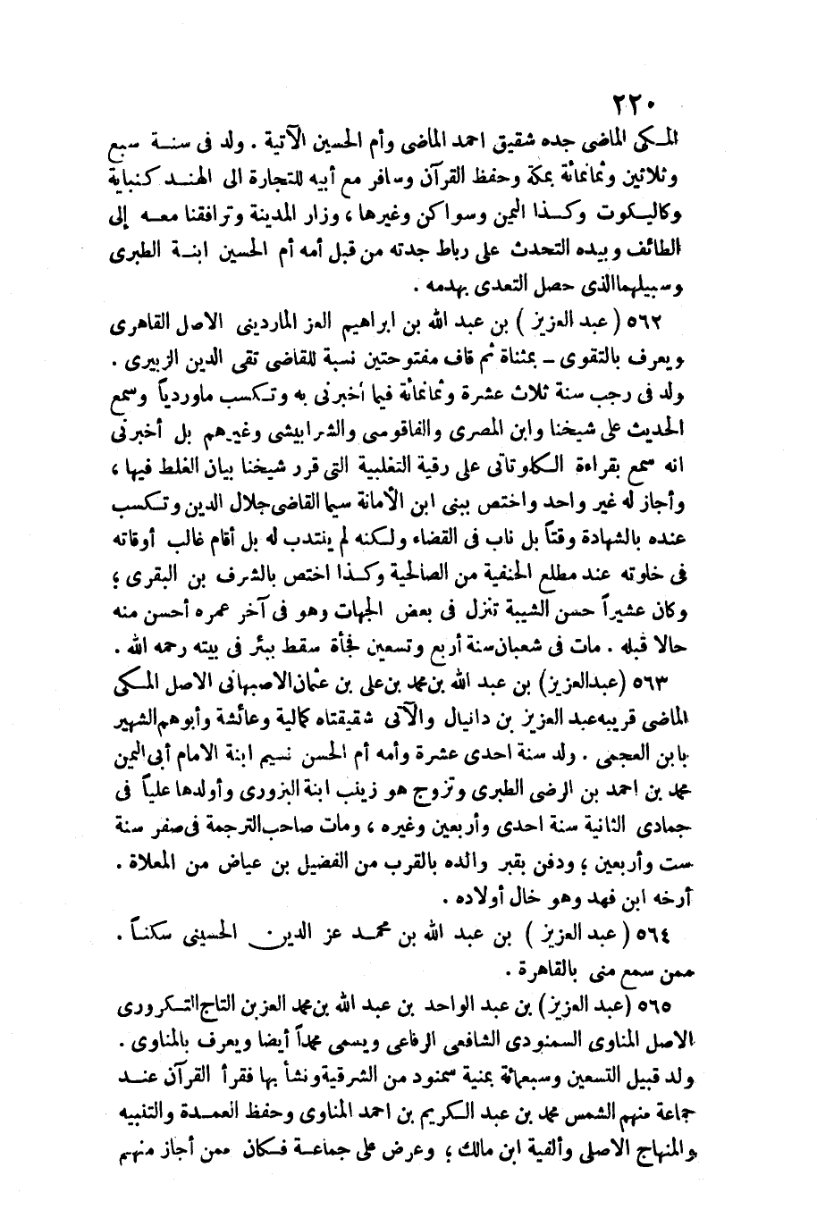 562 - عبد الْعَزِيز بن عبد الله بن إِبْرَاهِيم الْعِزّ المارديني الأَصْل القاهري وَيعرف بالتقوى بمثناة ثمَّ قَاف مفتوحتين / نِسْبَة للْقَاضِي تَقِيّ الدّين الزبيرِي. ولد فِي رَجَب سنة ثَلَاث عشرَة)