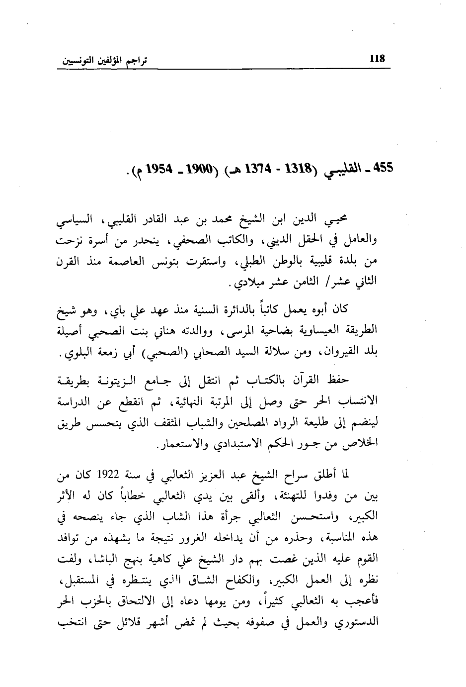 455 - القليبي (1318 - 1374 هـ) (1900 - 1954 م).