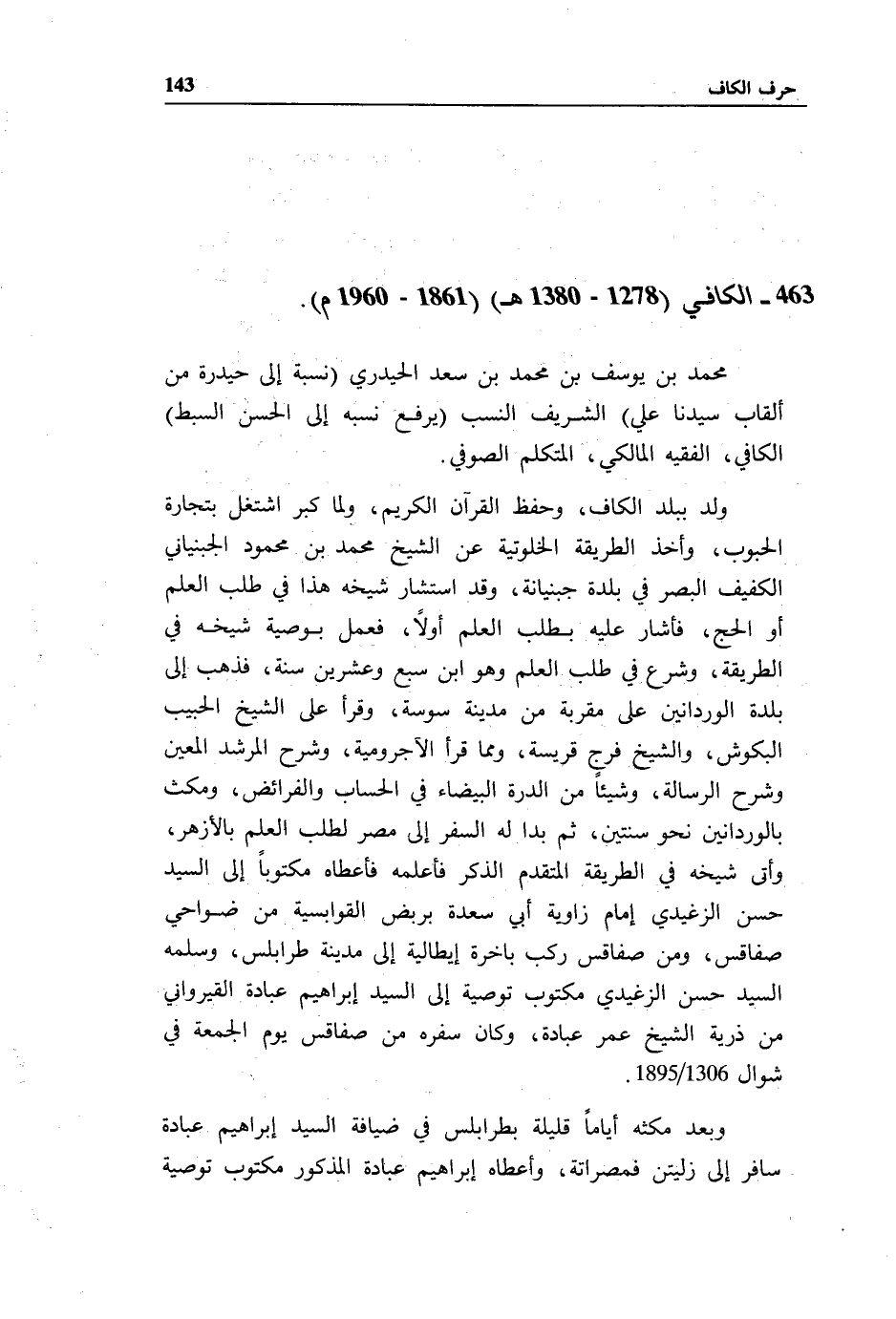 463 - الكافي (1278 - 1380 هـ) (1861 - 1960 م).