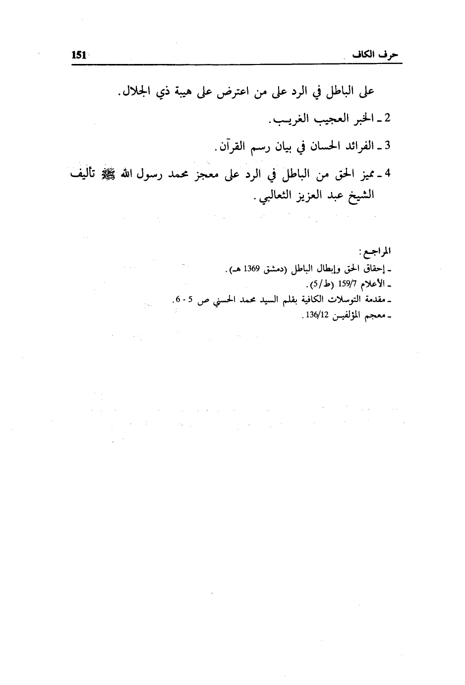 4 - مميز الحق من الباطل في الرد على معجز محمد رسول الله صلّى الله عليه وسلم تأليف الشيخ عبد العزيز الثعالبي.