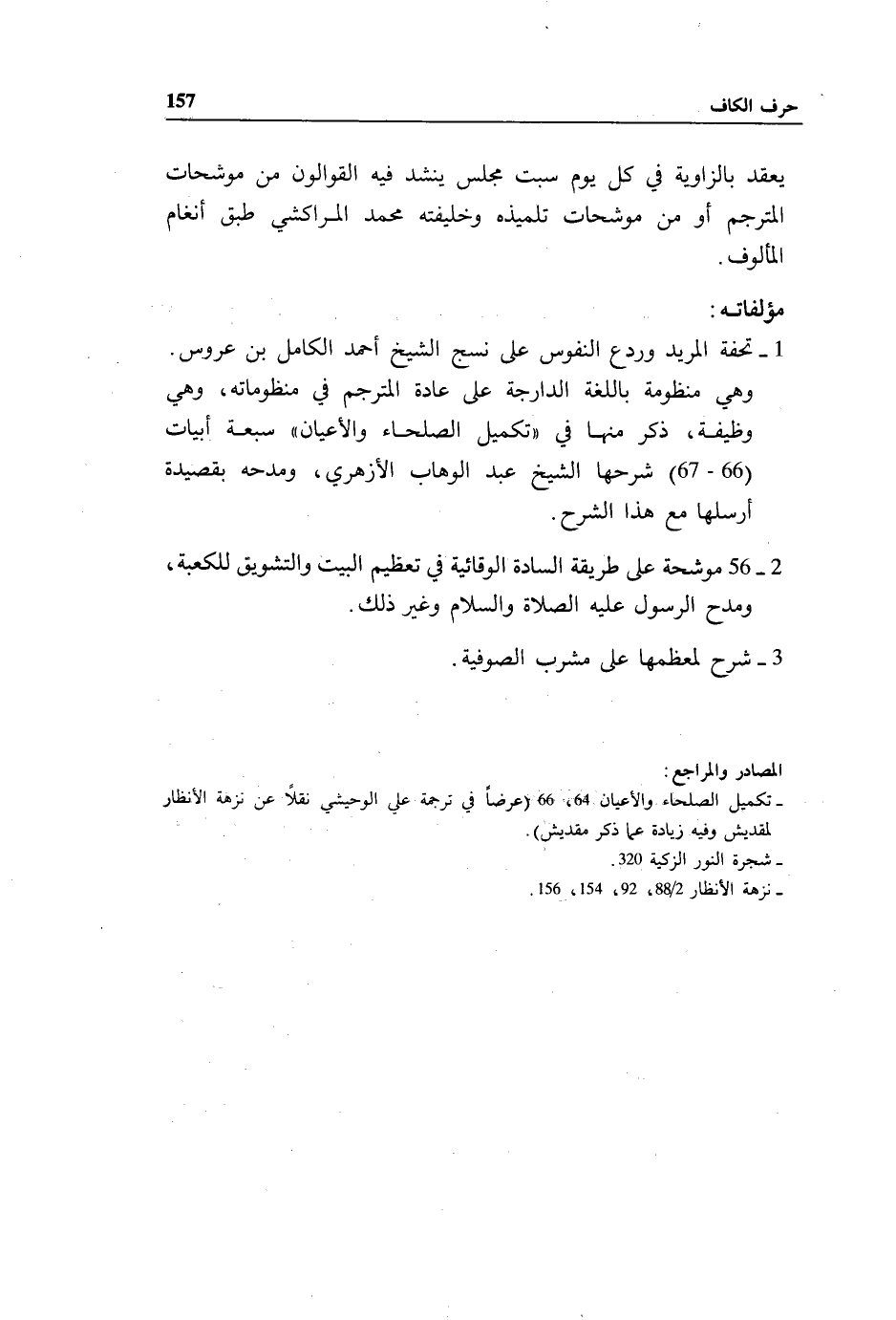 - تكميل الصلحاء والأعيان 64، 66 (عرضا في ترجمة علي الوحيشي نقلا عن نزهة الأنظار لمقديش وفيه زيادة عما ذكر مقديش).
