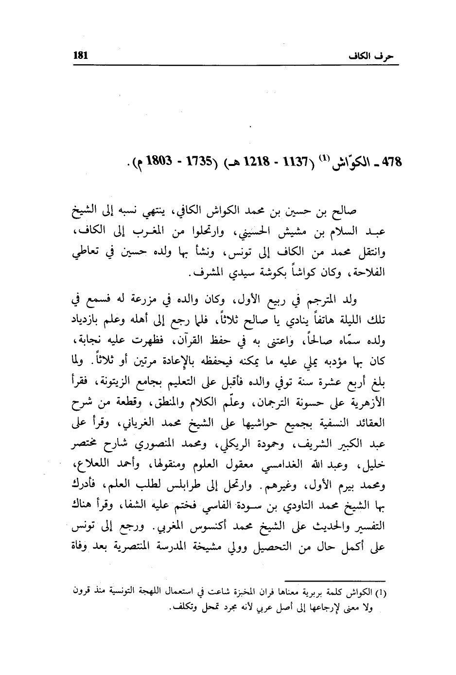 478 - الكوّاش (¬1) (1137 - 1218 هـ) (1735 - 1803 م).