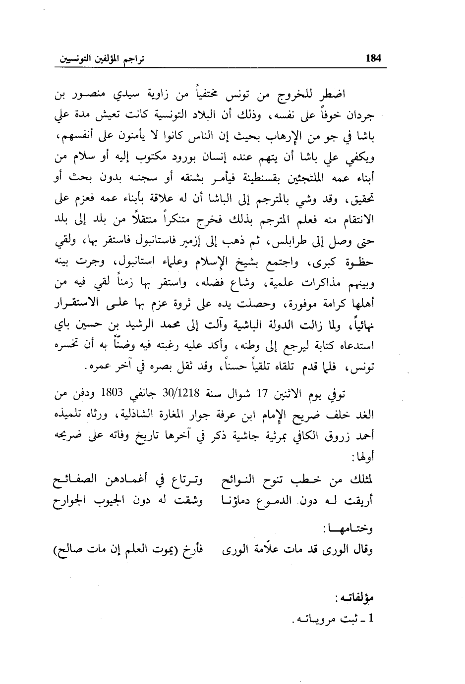 وقال الورى قد مات علاّمة الورى … فأرخ (يموت العلم إن مات صالح)