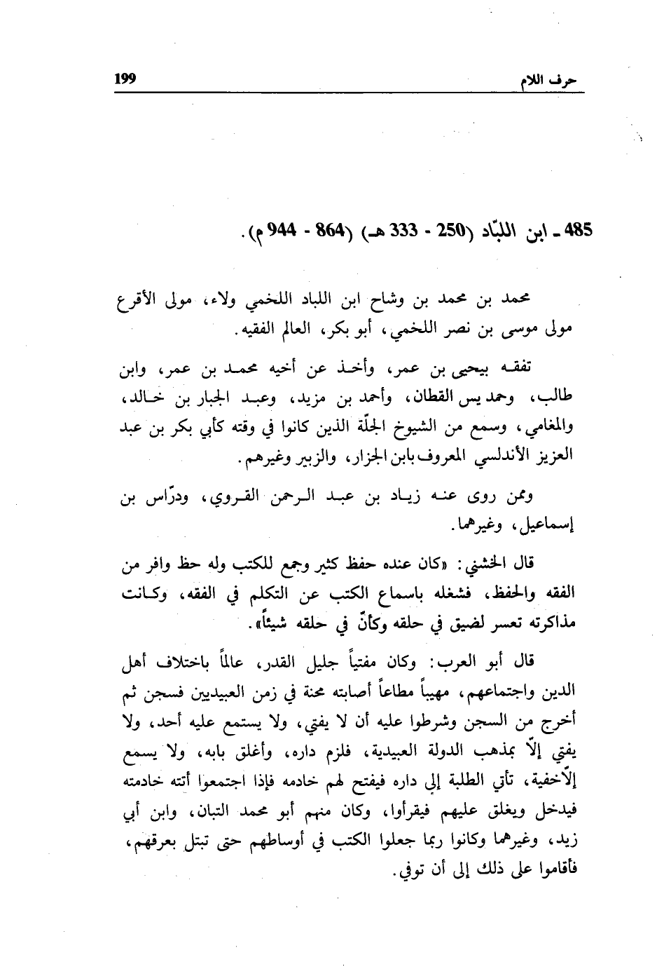 485 - ابن اللبّاد (250 - 333 هـ) (864 - 944 م).